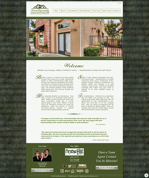 The samples shown here are actual customer website home pages from sites designed and created by Systems Up.